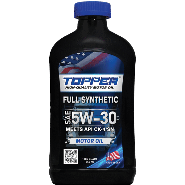 Topper ® SAE 5W-30 100% SYNTHETIC oil are heavy duty diesel and fuel engine oils with excellent racing performance. They contain state-of-the-art dispersion and ash control systems to keep the engine extremely clean. Extreme Drain Interval Capacities. Eliminates the need to clean diesel and fuel particulate filters and is compatible with virtually all diesel engines and heavy-duty trucks, model year 2017 and later, equipped with emission control systems such as DPF, SCR, or DOC. Suitable for any engine that recommends CK-4, CJ-4, CI-4, CI-4 PLUS, CH-4, and SN oils.